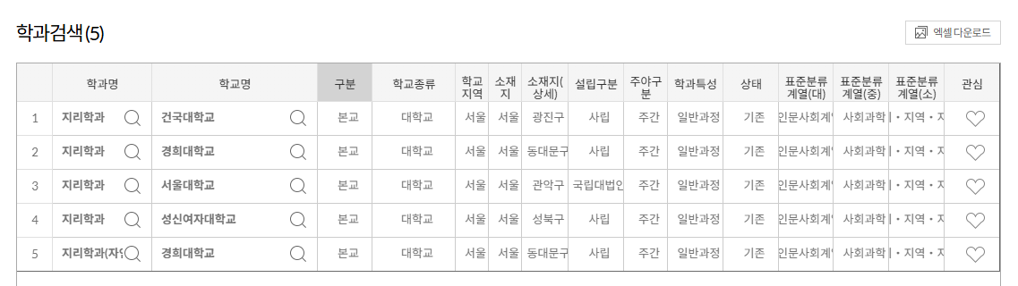 인서울권 대학중 지리학과가 설치된 학개는 총 5개의 대학이며 간략한 특징을 살펴보겠습니다.